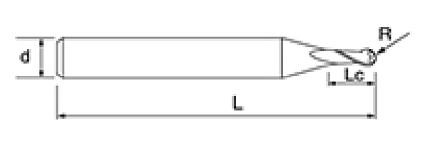 | No. | reiámetro D | Ángulo R R | longiture de la flauta lc | Longitud total L | Diámetro del vástago d | Recuento de cuchillas f |