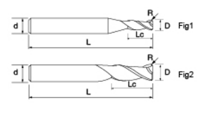 | No. | reiámetro D | Ángulo R R | longiture de la flauta lc | Longitud total L | Diámetro del vástago d | Recuento de cuchillas f |
