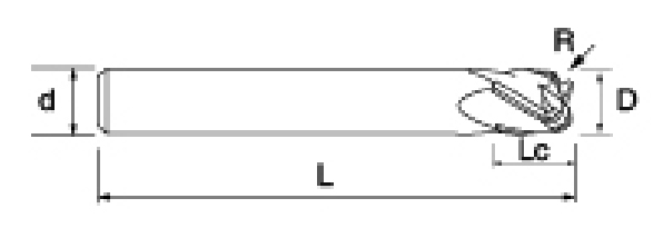 | No. | reiámetro D | Ángulo R R | longiture de la flauta lc | Longitud total L | Diámetro del vástago d | Recuento de cuchillas f |