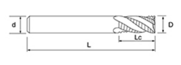 | No. | reiámetro D | longiture de la flauta lc | Longitud total L | Diámetro del vástago d | Recuento de cuchillas f |