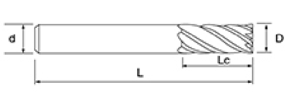 | No. | reiámetro D | longiture de la flauta lc | Longitud total L | Diámetro del vástago d | Recuento de cuchillas f |