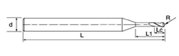 | No. | reiámetro D | Ángulo R R | longiture de la flauta lc | Longitud efectiva L1 | Longitud total L | Diámetro del vástago d | Recuento de cuchillas f |
