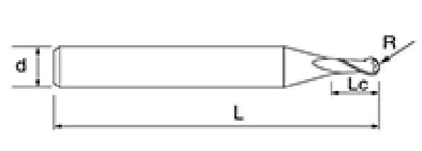 | No. | reiámetro D | Ángulo R R | longiture de la flauta lc | Longitud total L | Diámetro del vástago d | Recuento de cuchillas f |
