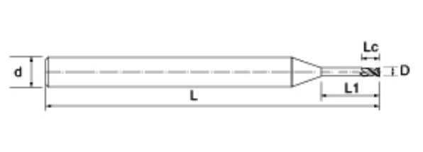 | No. | reiámetro D | longiture de la flauta lc | Longitud efectiva L1 | Longitud total L | Diámetro del vástago d | Recuento de cuchillas f |