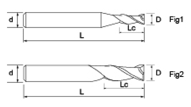 | No. | reiámetro D | longiture de la flauta lc | Longitud total L | Diámetro del vástago d | Recuento de cuchillas f |