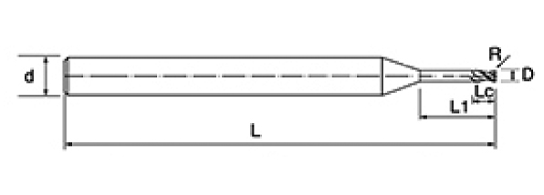 | No. | reiámetro D | Ángulo R R | longiture de la flauta lc | Longitud efectiva L1 | Longitud total L | Diámetro del vástago d | Recuento de cuchillas f |