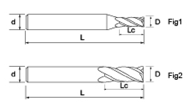| No. | reiámetro D | longiture de la flauta lc | Longitud total L | Diámetro del vástago d | Recuento de cuchillas f |