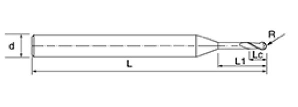| No. | reiámetro D | Ángulo R R | longiture de la flauta lc | Longitud efectiva L1 | Longitud total L | Diámetro del vástago d | Recuento de cuchillas f |