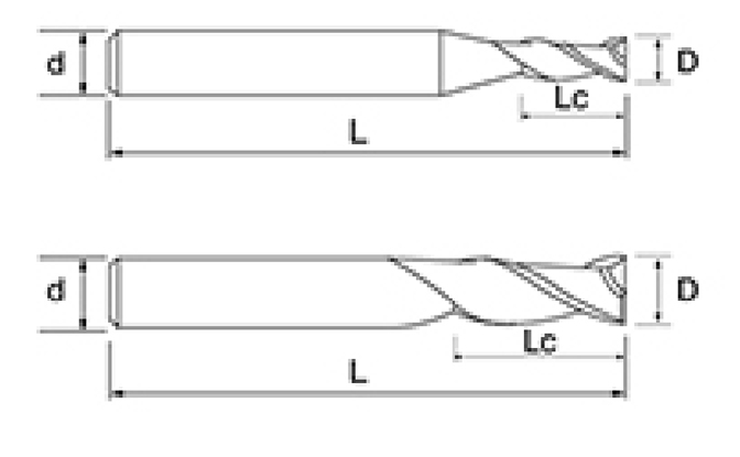 | No. | reiámetro D | longiture de la flauta lc | Longitud total L | Diámetro del vástago d | Recuento de cuchillas f |