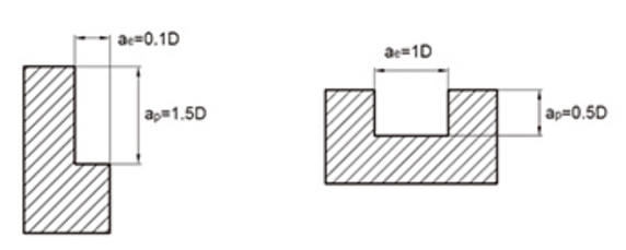 1. La tabla anterior se basa en los valores de referencia para el fresado lateral. Las condiciones de corte para el fresado de ranuras se basan en el 70 % de la velocidad de avance de la tabla anterior.