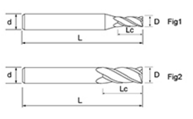 | No. | reiámetro D | longiture de la flauta lc | Longitud total L | Diámetro del vástago d | Recuento de cuchillas f |