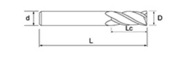 | No. | reiámetro D | longiture de la flauta lc | Longitud total L | Diámetro del vástago d | Recuento de cuchillas f |