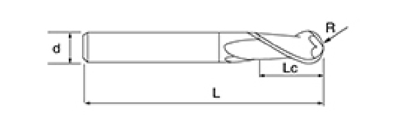 | No. | reiámetro D | Ángulo R R | longiture de la flauta lc | Longitud total L | Diámetro del vástago d | Recuento de cuchillas f |