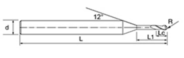 | No. | reiámetro D | Ángulo R R | longiture de la flauta lc | Longitud efectiva L1 | Longitud total L | Diámetro del vástago d | Recuento de cuchillas f |
