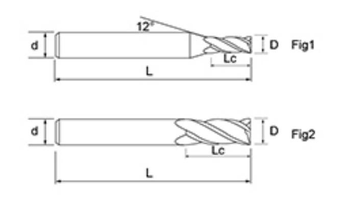 | No. | reiámetro D | longiture de la flauta lc | Longitud total L | Diámetro del vástago d | Recuento de cuchillas f |